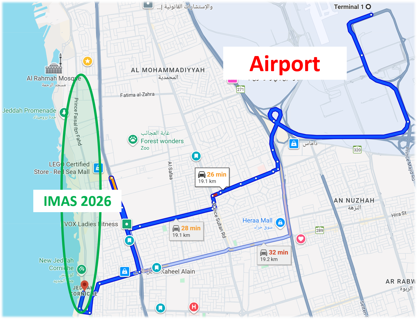 20–25 min drive (≈ 22 km) from King Abdul-Aziz International Airport